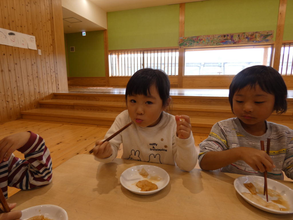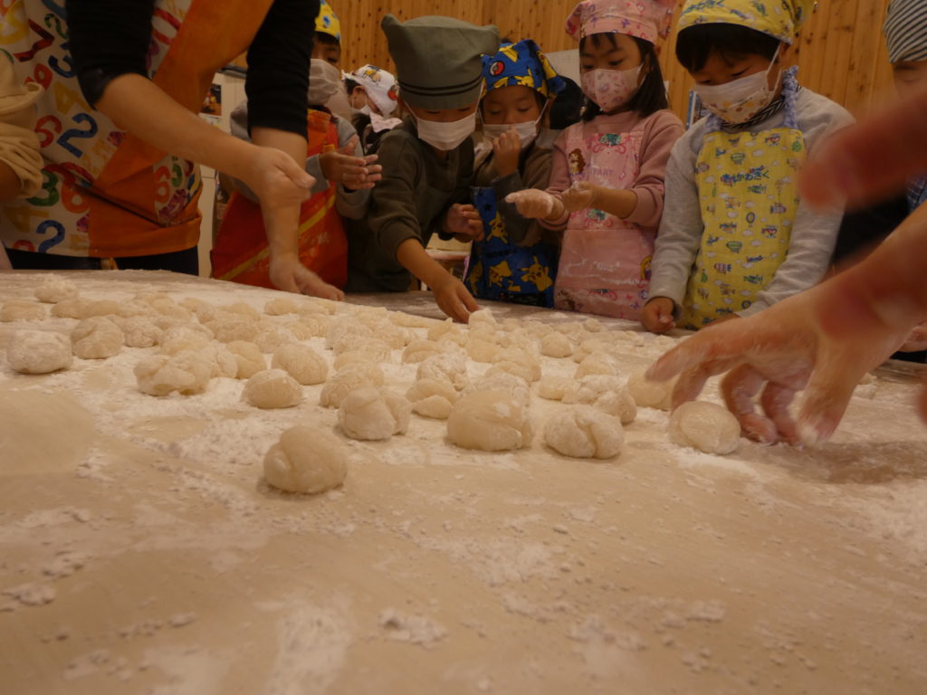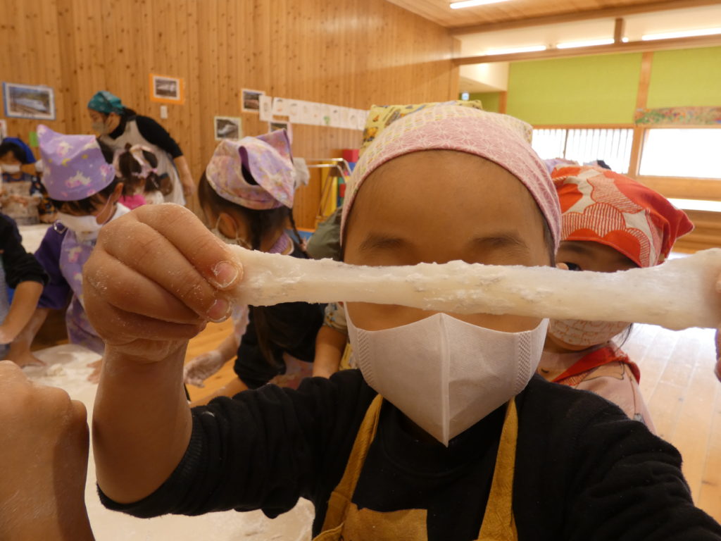 みんなでお餅を丸めて、みんなで食べる!