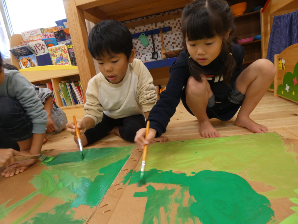 12 012023 はっぴょうかいの準備をしよう! 日常 発表会の大道具づくりのおてつだい。 大きなキャンバスに絵具を塗って、塗って、また塗って。 いったい何が出来上がるのでしょう? Tweet 秋のいろいろ 前の記事 発表会のうらがわ 次の記事